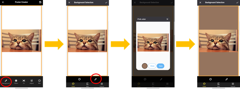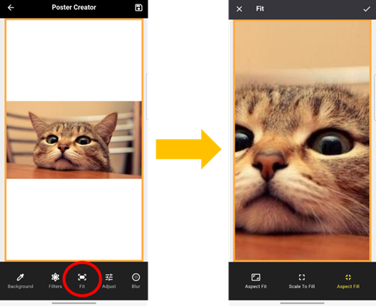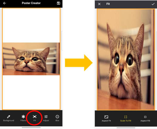 Poster Creator is specifically designed to facilitate content editing and customization. Users can customize the background, apply filters, and fine-tune the image's brightness, contrast, saturation, and blur settings. After clicking the checkmark icon in the top right corner, the chosen settings will be saved and overwrite the original image.