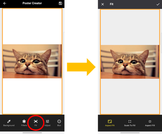 When the content is not full-screen, the FIT function can be used, offering three options: